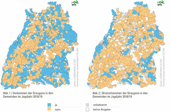 In den letzten Jahrzehnten war eine Zunahme des Bestandes in Baden- Württemberg zu beobachten. Bei einer landesweiten Zählung im Januar 2011 machten Graugänse mit ca. 9000 gezählten Tieren 80 % aller gezählten Gänse aus. Als wichtige Gewässersysteme werden die östliche Donau, der nördliche und südliche Oberrhein sowie der Bodensee angesehen. Waren zuvor nur in begründeten Einzelfällen (z.B. Fraßschäden) Abschüsse erlaubt, dürfen Graugänse seit April 2015 in Baden-Württemberg in der Zeit vom 1. August bis zum 31. Januar bejagt werden.