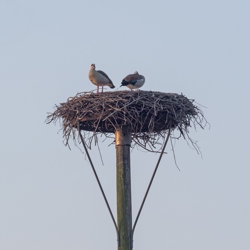 | Jungenaufzucht | Flexible Nistplatzwahl, im Gras, auf Bäumen oder Gebäuden; Nester max 300m vom Wasser entfernt; stark territorial während Brutzeit; Nestflüchter; flügge mit 65 - 70 Tagen, bleiben aber noch einige Wochen im Familienverband. |
