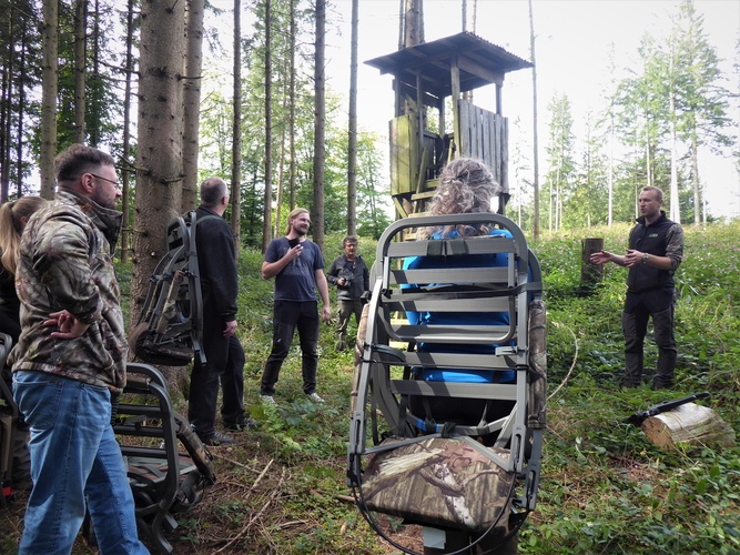 Optimalen Einsatz des Klettersitzes bei Drückjagen zur Bejagung des Schwarzwild, dies zeigen Ihnen die Berufsjäger der Wildforschungsstelle Baden-Württemberg.