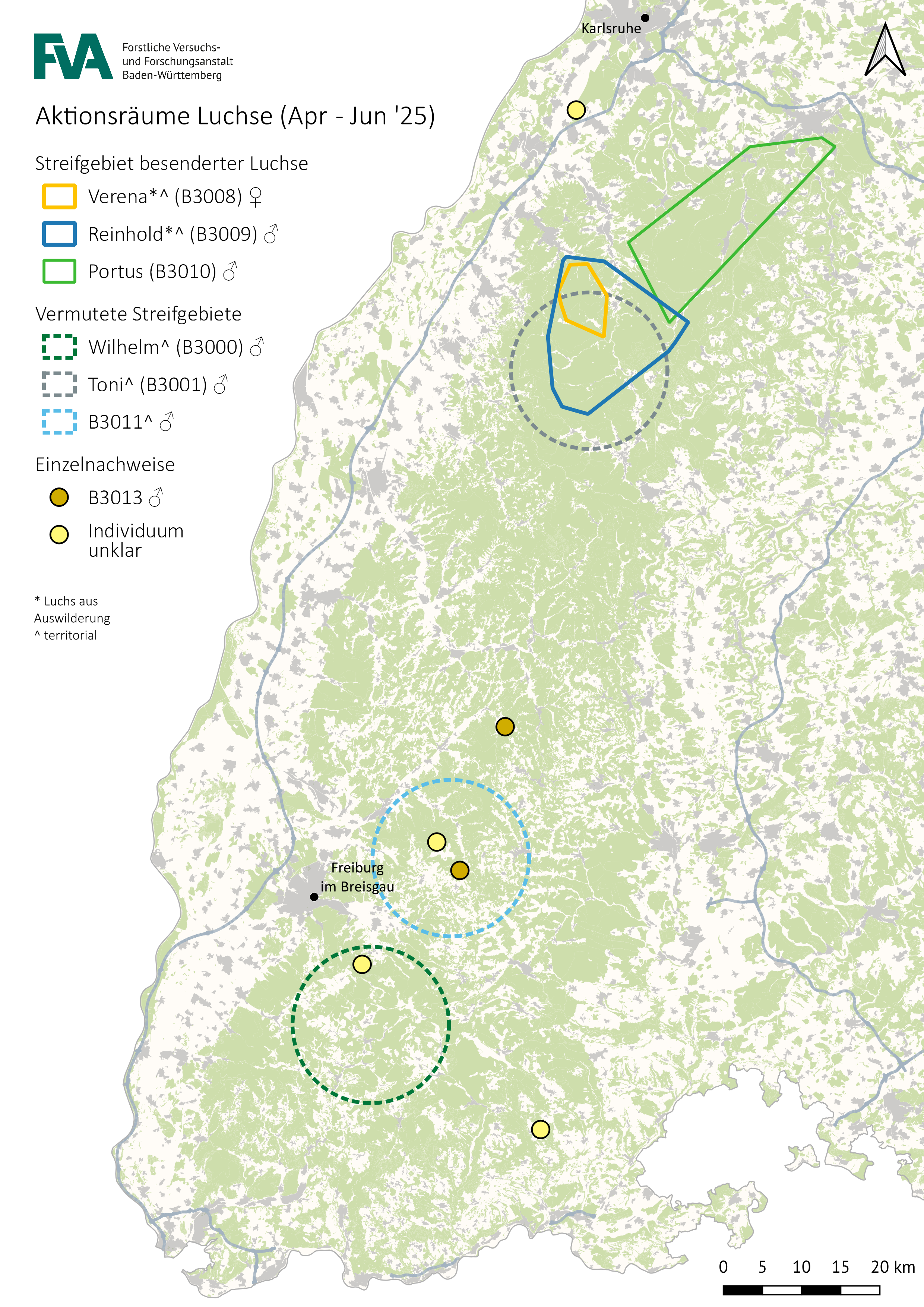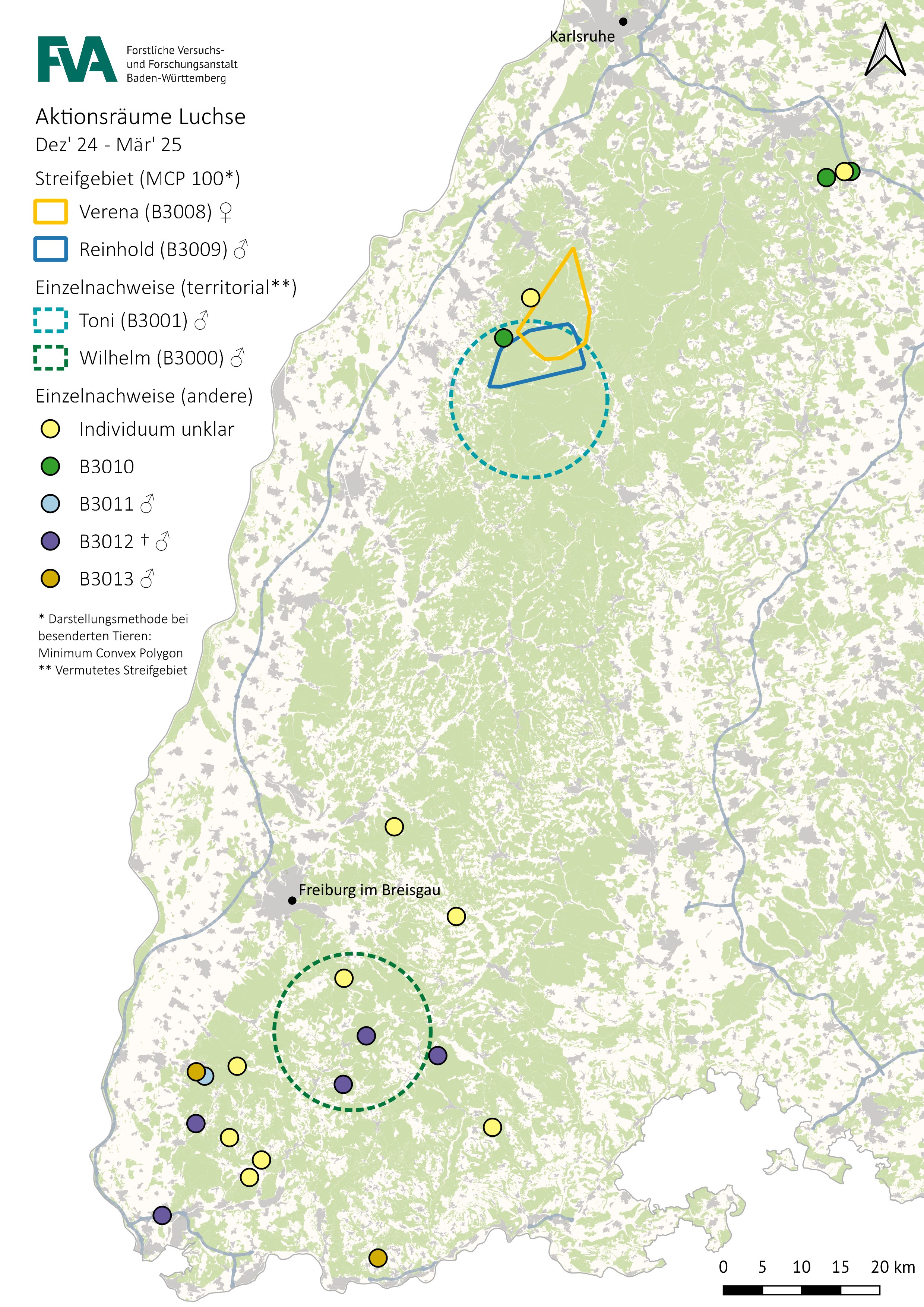 Aktionsraumkarte der Luchse in Baden-Württemberg
