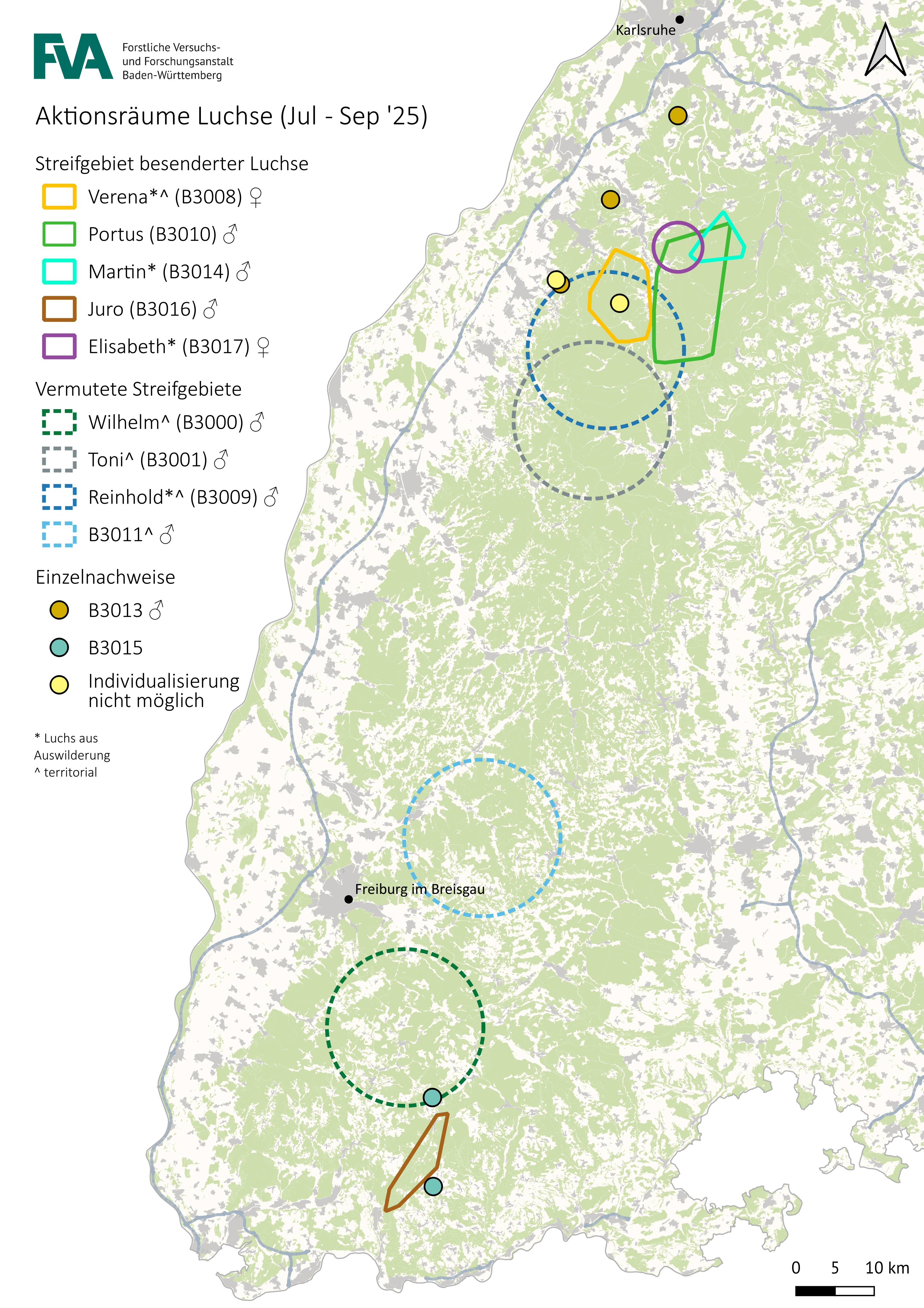 Eine tabellarische Übersicht über individualisierte Luchse in Baden-Württemberg seit 2015 finden Sie auf der Homepage des landesweiten Luchsmonitorings der Forstlichen Versuchs- und Forschungsanstalt Baden-Württemberg (FVA):